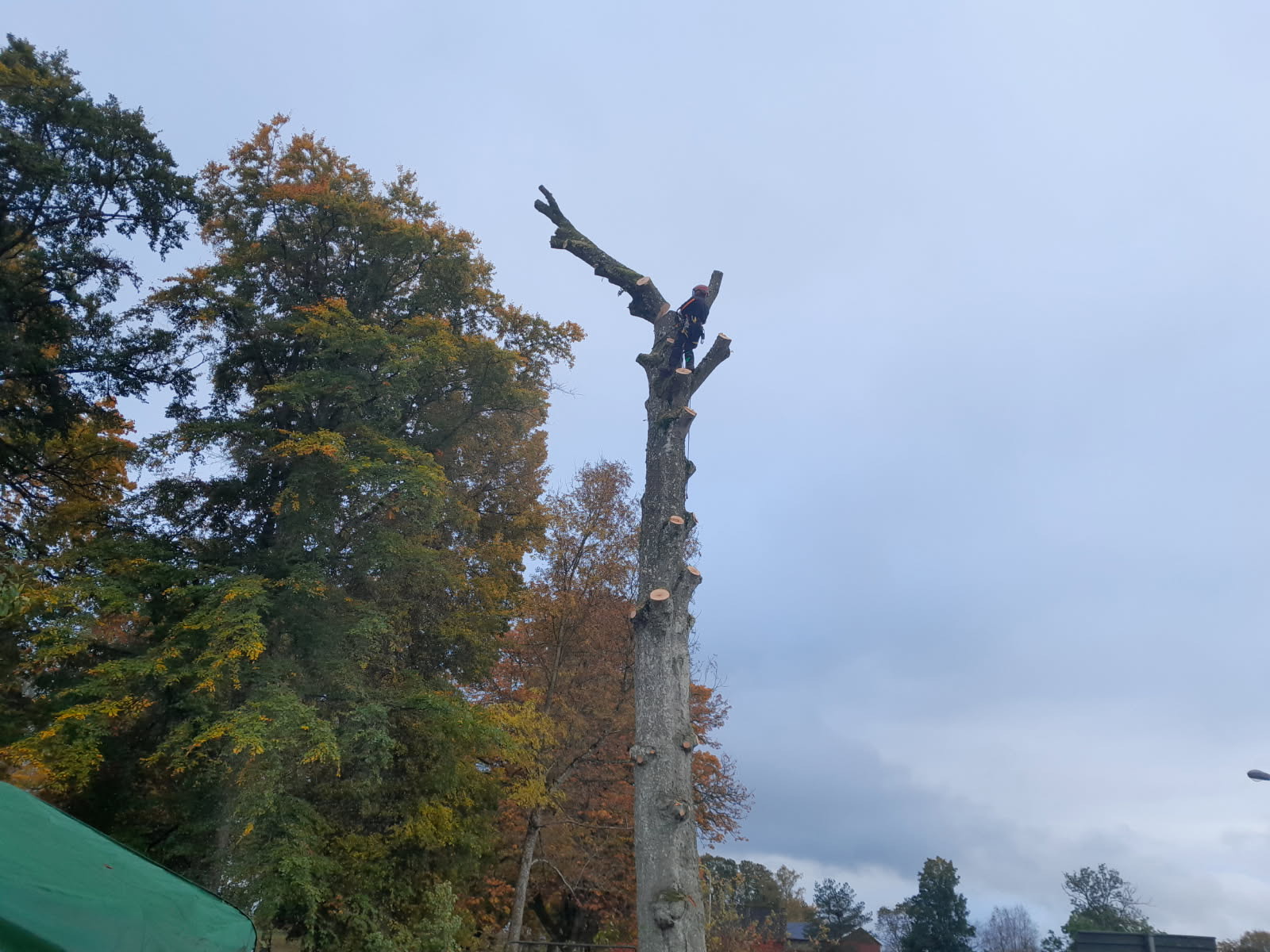 Vi använder professionell utrustning och moderna metoder för att fälla träd på ett kontrollerat sätt, även där det är trångt eller riskfyllt. Genom att klättra eller sektionsfälla kan vi ta ner träd bit för bit utan att skada byggnader eller mark.